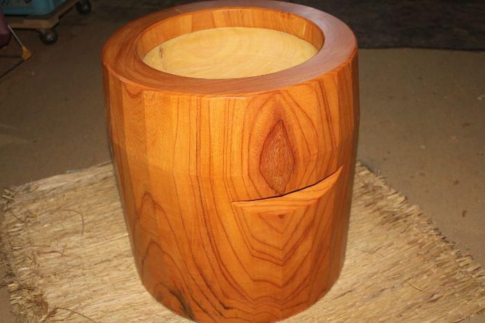 〇外側は割れ止め剤及びウレタン塗装、内側は芯割れを防ぎ、補強、水漏れ防止ために大小数個の埋め木をしてあります。埋め木について良くお問い合わせがありますが、埋め木はとても大切で水漏れ防止や耐久性のためにはなくてはならないものです。