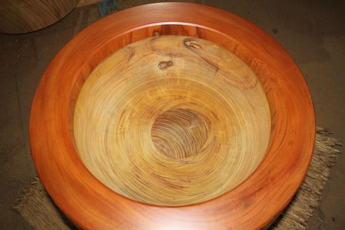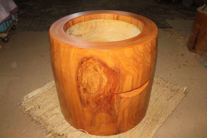 〇外側は割れ止め剤及びウレタン塗装、内側は芯割れを防ぎ、補強、水漏れ防止ために大小数個の埋め木をしてあります。埋め木について良くお問い合わせがありますが、埋め木はとても大切で水漏れ防止や耐久性のためにはなくてはならないものです。