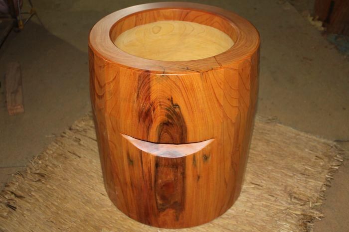 〇外側は割れ止め剤及びウレタン塗装、内側は芯割れを防ぎ、補強、水漏れ防止ために大小数個の埋め木をしてあります。埋め木について良くお問い合わせがありますが、埋め木はとても大切で水漏れ防止や耐久性のためにはなくてはならないものです。